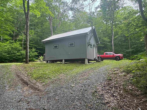 This camp was built in 2016, it's currently used as a hunting camp, however the owner has the Potable Water Supply and Wastewater System Permit for a 3-bedroom design. Gas generator is hooked up and this camp/ cottage is ready to enjoy. Propane wall unit and wood stove for heating. There is a rented Porta pot currently on the property. Appliances TV, Propane wall unit, wood stove and the furniture fits the style of the cabin and is included in the sale if the buyer wishes. There is the remains of an old 1700's home towards the top of the property. Private driveway. Property was surveyed. Stone monument and iron pins mark the boundaries. Make this your cabin/camp, finish it off to make it a year-round cozy affordable home. A great place to get away and enjoy nature.