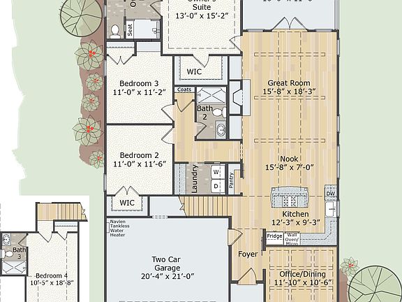 The ideal coastal living in our Gray Myst A floor plan with a front porch and large back screened porch perfect for all seasons! We have sprinkled eye-catching features you don't want to miss! The kitchen takes your breath away with the immaculate island with an inserted gas cook-top. Real maple wood cabinets with soft-close doors, granite counter-top, Whirlpool appliance package (dishwasher, gas cook top, wall oven/microwave unit), Moen plumbing fixtures, tile backsplash and a stainless-steel farm sink! A large walk-in pantry and right behind the laundry room with overhead wall mounted cubbies and a drop-zone counter with shelves below. The owner's suite presidential tray ceiling with ambient rope lightning is spectacular with a ceiling/fan light combo fixture accompanied by remotes. The walk-in closet space is like any you've ever had. The master bath features a tiled shower, glass wall, shower head with handheld, a storage niche with lighting and mosaic tile accents, serene soaking tub, and a 66" double-sink vanity. The freestanding tub comes with tile surround and a floor mounted faucet. All Riptide homes are HERS Energy Certified and feature a Navien tankless gas water heater, custom trim, crown molding, and wainscoting. Hardie plank siding, charming stacked stone accents, a side access door from the foyer and on the outside of the house to enter the finished 2-car garage with carriage-style door, multiple zone irrigation system and a customized landscaping packag