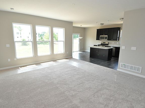 Open ranch floor plan for sale with walk out basement! Located on a private lot this beautiful farmhouse ranch has it all. Full front porch, upgraded luxury vinyl plank flooring, 6 foot extension off the kitchen, 42 inch cabinets, kitchen island with option for gas oven. The spacious master suite offers a with walk in shower with seat, double bowl sinks and large walk in master closet. The view from this full walk out basement with 9 foot ceilings and bath room rough in, is gorgeous.