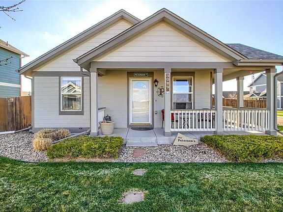 Beautiful ranch home with 3 beds, 2 bath and a wrap around porch on a corner lot. This open floor plan home features living room with laminate bamboo floors. Kitchen has granite countertops, tile floors and eat-in dining space. Master bedroom with full master bathroom. 2 additional bedrooms with new carpet and full bathroom. Laundry room with washer (new) and dryer. Detached 3 car garage. Spacious fenced in backyard with new custom stained concrete patio, shed, dog run area and new landscaping. Move in ready! HOA covers park maintenance, community pool, trash removal and front yard maintenance including watering and snow removal. Don't miss this amazing opportunity to own in the desirable Wolf Creek Run community!