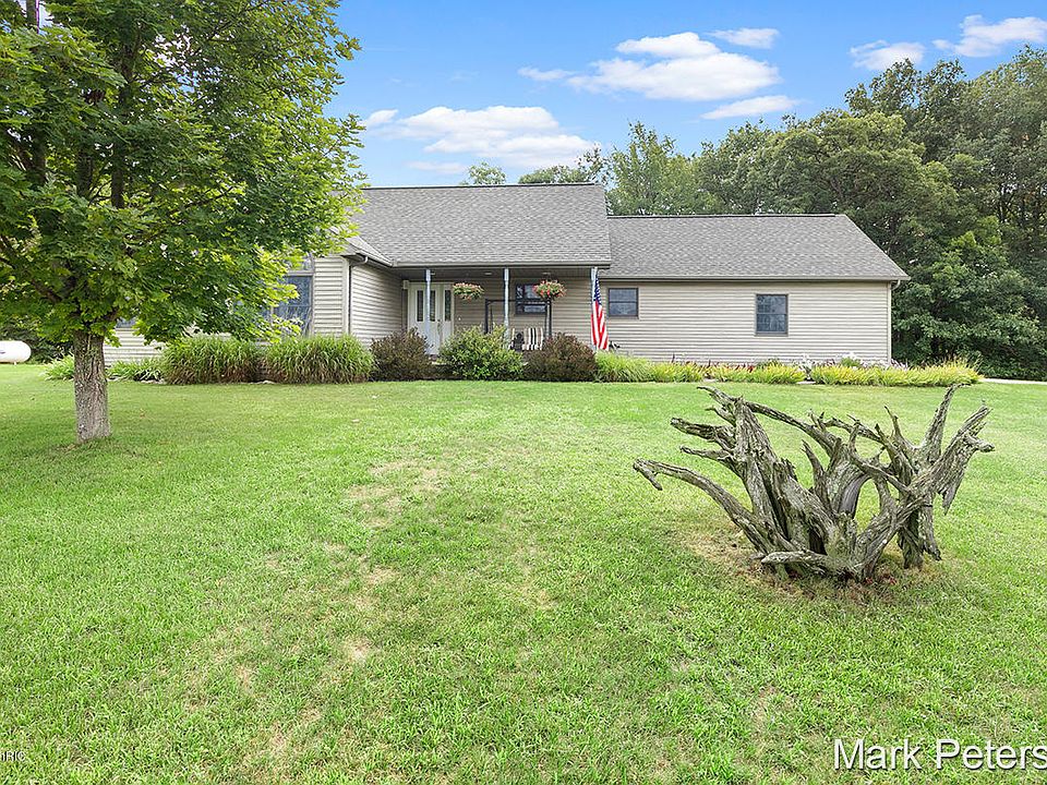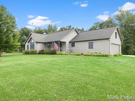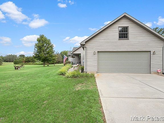 10+ acres in a rural country setting, northwest of Greenville just an 1/8 mile from paved Sidney Rd which turns into Lincoln Lake Rd for easy access to Grand Rapids. Open floor plan, Hickory kitchen cabinets, large bay window in dining area, mud & laundry off attached insulated, drywalled 24x24 garage. Ceramic tile main entry w/open stairway to lower level. Large master suite w/master bath featuring jetted tub, shower & skylight. Lower level features a family room(just needs a ceiling), full bath, extra finished room (no egress window) & two mechanical & storage rooms. Outdoor enjoyment on the 12 X 30 composite deck, there is a cleanup for an RV, garage has hot & cold hose bibs w/floor drain, alarm system, newer carpeting, Andersen windows, 6 panel solid oak interior doors & trim.
