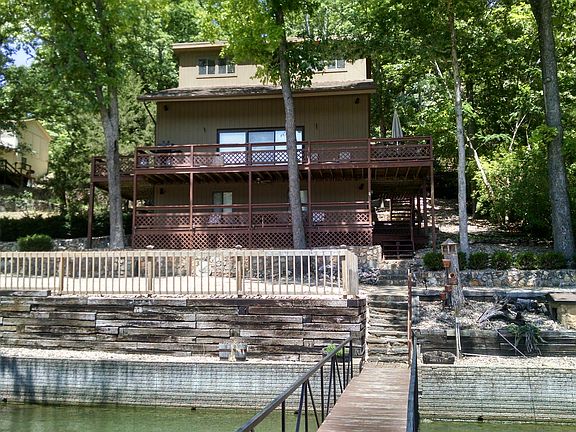 Enjoy Lake life at the waters edge! Hands down the nicest home for the price on the Lake! Turn-key home is located in the beautiful Proctor Cove at the 55 MM of the Lake of the Ozarks. 2400 sq. ft. total! The lower level has a garage and workshop with a full bath. The 1 acre 2nd tier lot provides extra parking or room to build! The home is currently being used as a vacation rental with GREAT INCOME POTENTIAL! Short gentle walk out of the house to your private dock, boasting 2 slips with lifts and swim deck all included in this low price. If lakeside BBQs, summer breezes and beautiful lake views are your cup of tea, don't let this one get away!Spring is going to be here before you know it. BRING YOUR OFFERS NOW!