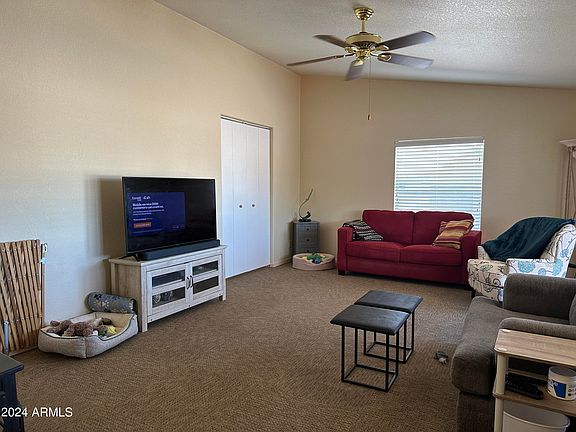 RVers Dream Home Base is North Ranch, and this Well Kept Home is the Home You are Looking for. With a Den/Gst Rm & Az Rm, and TWO Storage Sheds! Use one as the Workshop and the Other as the Craft/Storage, or Could be a Casita? Citrus Trees, MAJESTIC Mesquite Trees Enhances this Quarter Acre with TWO RV HookUps. Relax on the Covered PATIO Watching the Amazing Mountain Sunsets. All Appliances Stay. Great Kitchen AND Cabinetry You Will Enjoy. Brand New Walk in Tile Shower, New Flooring, Newer Roof and AC. NORTH RANCH, WHERE YOU CAN STILL FIND A CARING ACTIVE NEIGHBORHOOD, and Just Steps away from State and BLM land to Explore.