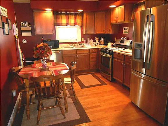 Adorable beautifully remodeled 3 bedroom ranch on fenced level lot. Tastefully updated in today's colors throughout with newer stainless appliances included. Large eat-in-kitchen opens to spacious living room-great for entertaining. Full bath is awesome and recently redone, too. A/C unit installed this year. Basement is huge with endless possibilites. 2 covered porches. Move right in. Home warranty included.
