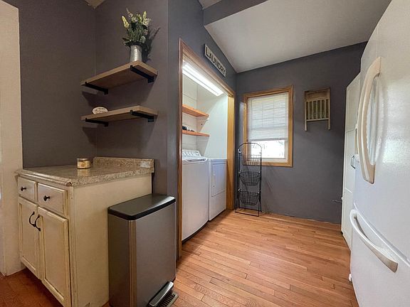 Nice 3 bedroom, 1.5 bath, 1.5 story home with 2-stall detached garage. Inviting main floor has spacious family and dining room with hardwood floors, efficient kitchen, large full bath and bedroom. Upper level finds 2 additional bedrooms and half bath. Private back deck leads to fenced back yard. Affordable home with character.
