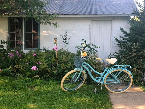 The property includes a vintage chicken coop, workshop, and 2-car garage. A beautiful established perennial flower garden surrounds the home for continuous colorful blooms all summer.