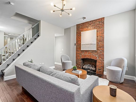 This three-story Lawrenceville home brings serious space and style — with hardwood floors, tall ceilings, and exposed brick adding character throughout. The main level features a bright living room with a decorative fireplace, dining area, and eat-in kitchen with island seating. Bonus: a rare first-floor powder room with modern tile and a chic vanity. Upstairs, the second-floor primary bedroom is spacious and light-filled. The updated full bath features a double-sink vanity, and a tiled shower with glass doors. A bonus loft opens to a rear deck — perfect for an office, workout zone, or extra hang space. The third floor has two more spacious bedrooms with hardwood floors, exposed brick decorative fireplaces, & tall ceilings. The basement is clean and bright with tons of storage. Outside, enjoy a rear deck & roomy patio — perfect for summer hangs. All this, just blocks from Butler Street, Happenstance Cafe, Trace Brewery, and more. Quick access to the Strip, hospitals, and universities!