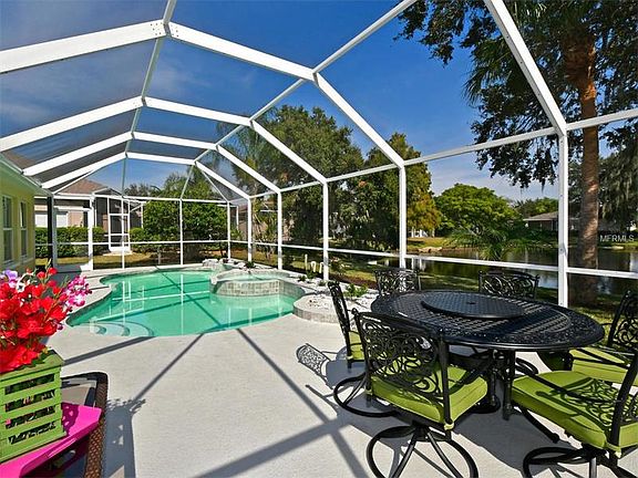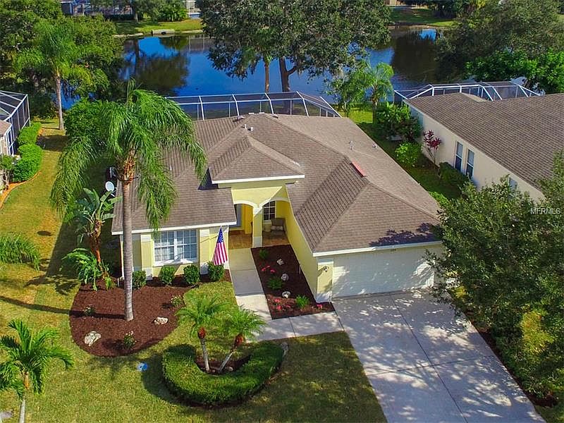 Perched on a stunning lake, this NEWLY UPDATED and Move In ready home is ideally situated in River Pointe, a unique community designed to capture the beauty of the surrounding waters where the Braden and Manatee River meet. As you approach the charming front porch through the arched doorway; you will immediately be welcomed with the sparkle of the sun dancing off of the lake and azure blue swimming pool. Your lakefront home features soaring ceilings, an Open concept Split floor plan, freshly painted inside and out, brand NEW Kitchen including stainless appliances, granite countertops and modern glass backsplash, updated baths, tile floors, new carpet, new fixtures and new fans & Indoor laundry. An oversized lanai around the pool is the perfect place for entertaining guests or just relaxing to the sounds of the fish jumping. A generous master suite has sliders onto the lanai for easy access to enjoy your morning coffee. An oversized master closet and double vanity bath is the perfect retreat after a day on the water with friends and family. Park your boat and trailer in your two car garage, when youre ready to launch from the community boat ramp its only 2 houses away what a VALUE and awesome way to have the waterfront boating lifestyle for a fraction of the cost. River Pointe is a highly coveted, intimate community with just about 200 homes; it boasts a community boat ramp, dock, park and abundance of wildlife with convenient access to I75, Tampa, St Pete, Lakewood Ranch and Sarasota.