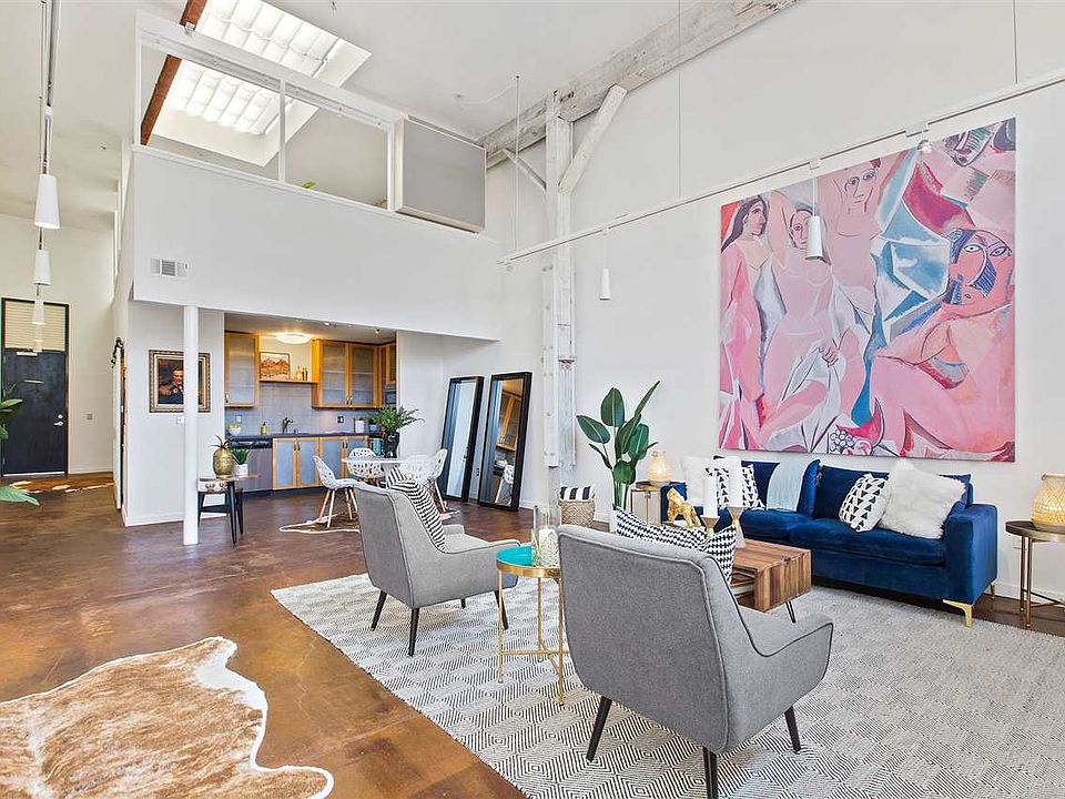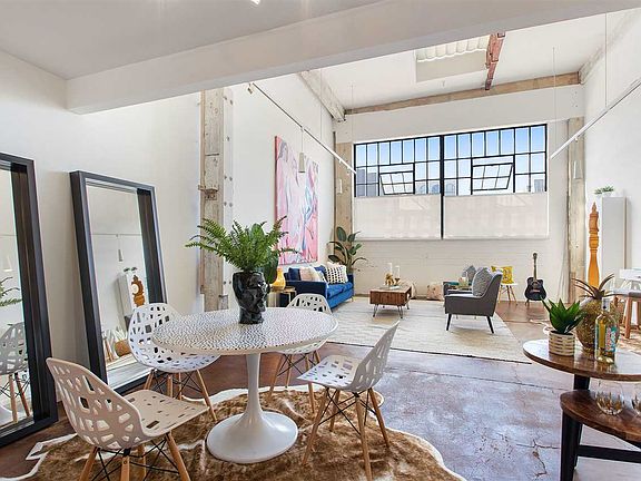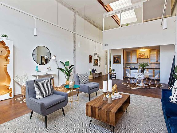 A magical, modern industrial loft in the heart of Oakland's historic warehouse district, 309 4th Street, Suite114 in Portico Lofts is a live/work space with a marvelous blend of creativity featuring soaring open spaces and thoughtful built-in storage opportunities. Polished concrete floors, tall ceilings, high windows, large skylight, and abundant natural light enhance the living/kitchen area, while the spacious mezzanine level is lit by multiple skylights with custom shades. Unique to this unit (and the reason for the skylights) is its history as the warehouse loading dock with direct access from the old 3rd Street rail line. The original pallet markings are still visible on the polished concrete floor, as well as remnants of an overhead hoist. With a walk score of 97, this beautiful home is ideally situated near the heart of Jack London Square, BART, Amtrak, and the Oakland/SF ferry. HOA fees include Internet and basic cable costs.