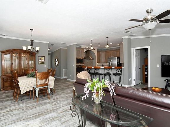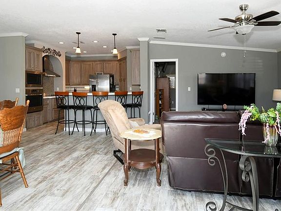 - Interior Features: Ceiling Fans(s), High Ceiling(s), Master Bedroom Downstairs, Open Floorplan, Walk-In Closet(s), Crown Molding, Thermostat, Kitchen/Family Room Combo, Living Room/Dining Room Combo, Window Treatments