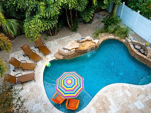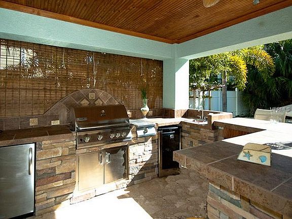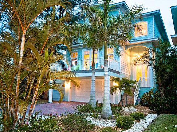 Amazing custom-built home just a short stroll to the sugar sand beaches of Anna Maria Island and the Gulf of Mexico. Enjoy the large heated pool that boasts a cascading rock waterfall and outside kitchen. The large outdoor tropical paradise is equipped with ample seating and space for everyone. There is a dining area, chaise lounge chairs, barbecue grill, and even a television and luxurious outdoor wet bar with sink and built-in refrigerator! Inside the large dining room comfortably seats 8 with an additional 4 at the gorgeous granite counter bar and quality kitchen cabinets. This home has Private Elevator, 4 bedrooms, 2.5 baths 2 car garage and is offered turnkey furnished. Tastefully furnished, this is a perfect retreat, second home or great investment property with already a well-established vacation rental track records.