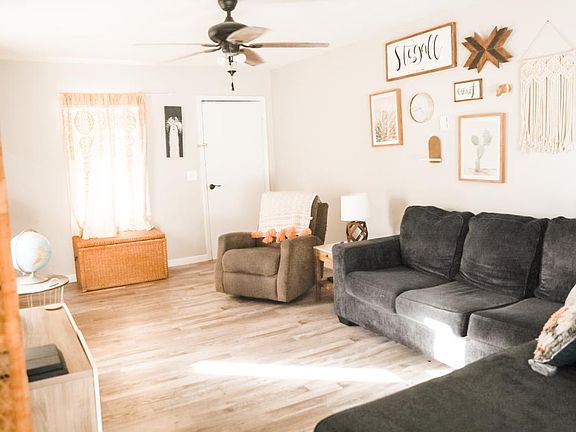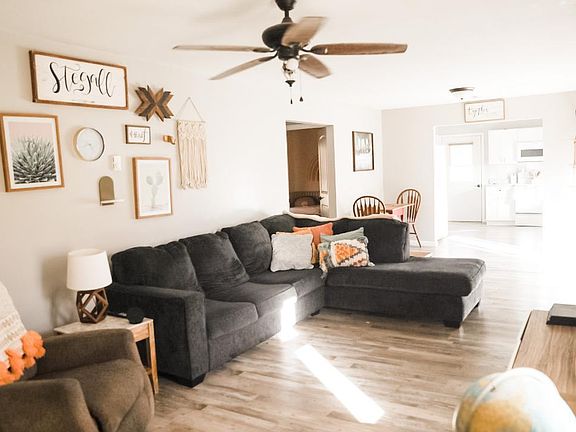 CUTE! Nice & Open Living Room, Dining & Kitchen w/Plank Vinyl Flooring. Kitchen comes w/All Appliances! 2 Good Sized Bdrms. Full Bath w/Tiled Shower. Laundry Room Located off of Kitchen. Backyard has 2 Sheds for Storage. Call to See Today!