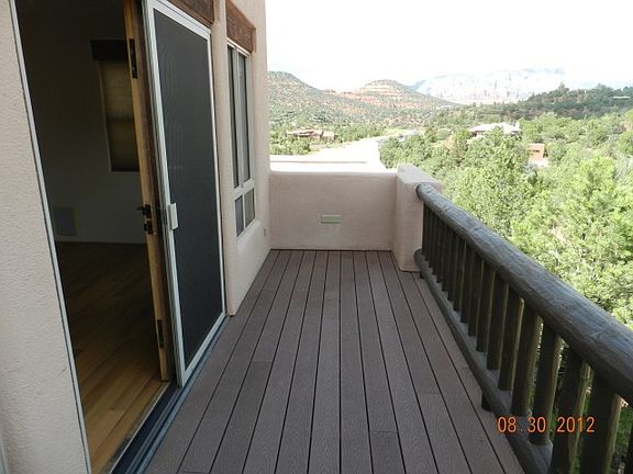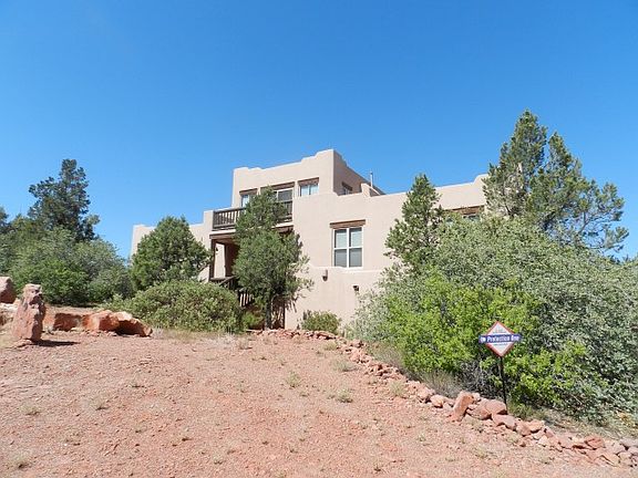 Southwest Pueblo Style home in Mystic Hills. Quality metal frame construction.Dramatic front entrance w/ mahogany doors which open to gallery foyer.Wood ceilings, stone flooring.Designer touches,upgrades and art niches throughout.4 fireplaces,1 see thru from Living room to fam.room, Beehive fireplace in Dining room, Beehive fireplace in bedroom #2 and 4th fireplace is a see thru Master Bedroom to bathroom.Gourmet kitchen with many built-ins,Granite,stainless steel and work island.Enjoy beautiful Sedona sunsets from the spacious wrap around deck.Upper level is the private Master Suite with deck for viewing Elephant Rock and other Red Rock views.Master bath has steam shower,spa tub and two granite vanities.Walk-in closet with custom built-ins.Mystic Hills offers community Tennis courts, pool and club house. Abundance of storage in garage.