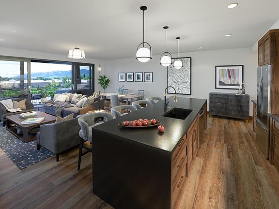 Nightly-weekly rental approved, in-town, premier condo with 3 bedrooms/3.5 bathrooms, plus bonus room and oversized unit - 2,307 square feet of well-integrated design, in sophisticated finishes. 2-sided fireplace punctuates the large entertainment space. Multiple decks - 53 sq. ft. deck off of south bedroom, 50 sq. ft. deck off of lock-out, and 222 square feet of north-facing covered deck (with hot tub & BBQ hookups), provides view to Big Mountain, while enjoying sunsets. The landscaped grounds include a walking path, fire pits, waterfront decks and docks, a play area and dog park. There is a detached private garage for securely storing toys. Large interior storage closet, an added benefit of potential for a smaller lock-out rental and a dedicated storage locker, in the common area.. Surface Water: Eagle Lake