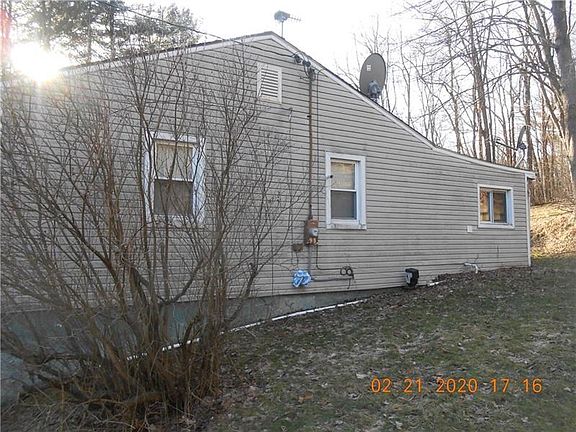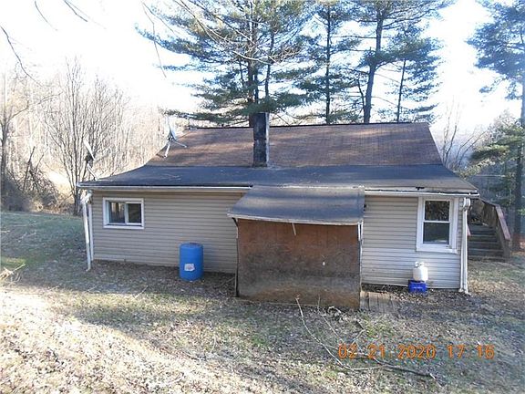 This two bedroom one bath home sits on a secluded 1 acre lot. Some furnsishings are included in the sale, along with a refrigerator, dishwasher, microwave, TV, gas generator, 52 inch zero turn mower, weed eater, and a new propane range. There is a first floor laundry room. The home has oil forced air heat and a new 200 amp electrical panel.