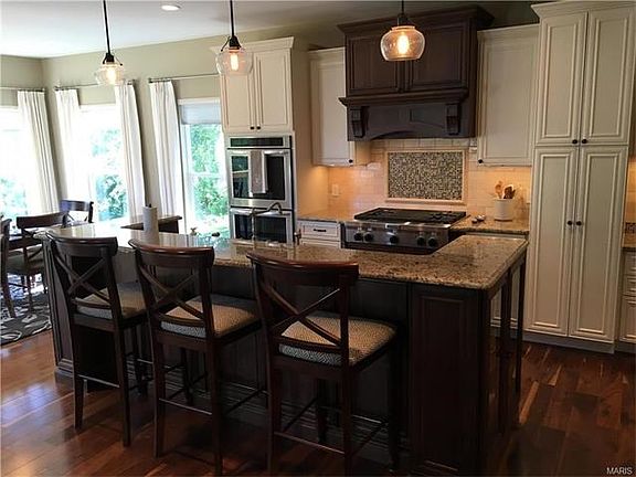 Gorgeous 4000+ sq ft split bedroom ranch on 1 acre premium lot in desired neighborhood! You have to see the inside to appreciate the details! Over $175k in improvements! Elegant newly remodeled kitchen w/SS appliances including double oven, gas cooktop w/grill, under-cabinet lighting & farmhouse sink. Custom window treatments. Beautiful walnut solid wood floors throughout main level & stairs. Vaulted, coffered, and 2-tier sculptured ceilings. 5 bdrm 3 bath. Full home audio. 2 fireplaces. MFL. Large fully finished basement w/full walkout has 119â projection TV w/full HD and 7.1 surround sound speakers! Automated blackout shades! Stunning in-wall low maintenance saltwater reef aquarium. 9â pour. Large level lot w/irrigation system perfect for pool & outdoor activities. Adjoins large low-traffic culdesac. Backs to woods on property. View overlooking Busch Wildlife. Easy access to major highways. 10 mins to Chesterfield Valley! Access to walking trails & Winghaven Boardwalk from culdesac!