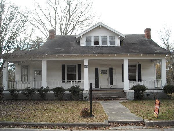Exterior Features: Two story home, white wood siding around the entire home is in great shape. Large covered, concrete and wood porch runs around the front of the home, looks great. Roofs is asphalt shingle and has no leaks, foundation is sound and has no gaps. Enclosed patio/porch to the right side of the home, nice shape. The yard is large in both front and back and is in nice condition. Parking is available on the side gravel drive. There is also a concrete garage for one car in the rear of the home, this is in excellent condition. Interior Features: The first living area is large, vinyl tiled floors, fireplace, yellow walls and white trim, the dining room has the same flooring, walls and trim. The second living room or den has vinyl flooring, peach walls, gray trim, fireplace and tall ceilings. The kitchen has green tiled floors and includes, cabinets, counter-tops and a double sink. The home has five bedrooms, the master has hard wood floors, red walls, white trim and a fireplace. The second bedroom has hard wood floors, need cleaning, white walls and tall ceilings. The third bedroom has purple carpet peach walls, gray trim and a fireplace. Bedroom four and five are on the second floor, the first has tan carpet, white walls, trim and a small closet, the second room has purple carpet , gray walls, white trim and a closet. There is also a large attic living area that separates the two upstairs rooms. House has a bathroom on the first floor that includes tub, toilet and sink. There is also a complete bathroom on the second floor, this is also complete with tub, toilet and sink. Home has a furnace and hot water tank.