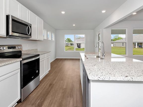 Introducing the Madison (B) floor plan offered by DR Horton, Inc. This plan hosts 3 bay garage, 4 bedroom with 3 full baths. Wonderful open concept plan with room to entertain and enjoying time at home. Beautiful granite kitchen counter tops, with white cabinets, Luxury vinyl Plank flooring in the main living areas/ Isolated bedroom 1 and bedroom 4. The large great room has 4 windows looking out over a large, covered patio. Carpet is in all bedrooms. DR Horton includes Smart Home Features in this home to include a Media Closet, Touchscreen Panel, Sky bell Video Doorbell and front door lock.