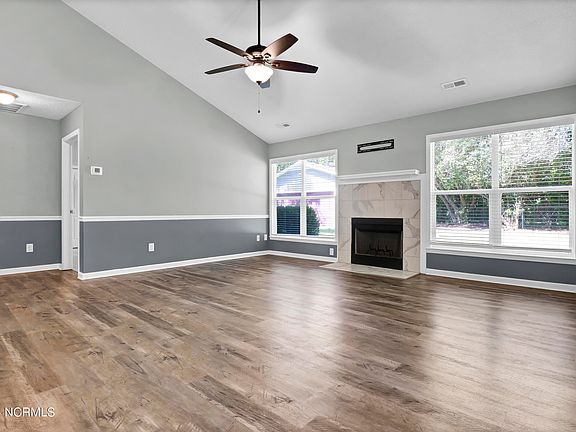 Welcome to 309 Birds Nest Ct, a charming home nestled on a quiet cul-de-sac street in the heart of Wilmington, NC. Step into the inviting foyer, where low-maintenance LVP flooring extends through the open-concept living space, anchored by a cozy fireplace. The seamless flow from the living room to the kitchen and dining area makes this home perfect for both relaxation and entertaining.