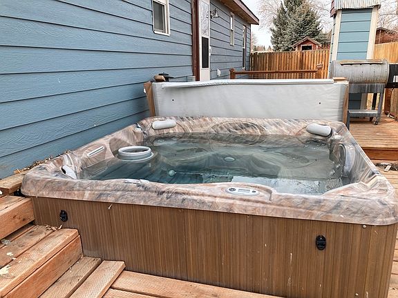 - Exterior Features: Fenced Yard, Irrigated, Storage Building, Cable, Hot Tub, Porch