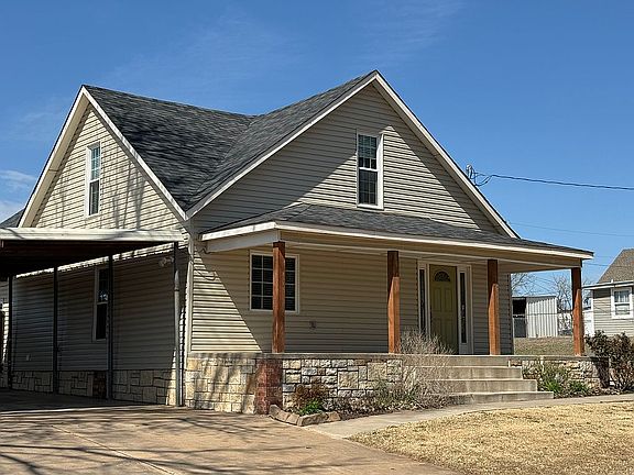 313 N Broadway Ave, Hydro OK Appx 1660 sq ft 3 bedroom 2 bath originally built in 1915 interior and part exterior remodel including plumbing and electric- 2015 Roof-2024 Siding-2024 Hvac- Dec 2021 Vaulted Porch addition appx 600 sq ft with electric for hot tub-2018 Composite fence surrounding large back yard- 2018 -20x24 metal building with overhead door and electricity - great performing Water Well for sprinklers etc. -empty lot to north of house is included with sale. appx 50 ft wide by 140 ft long. Would be perfect for a barn or investment property.