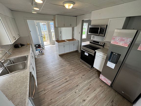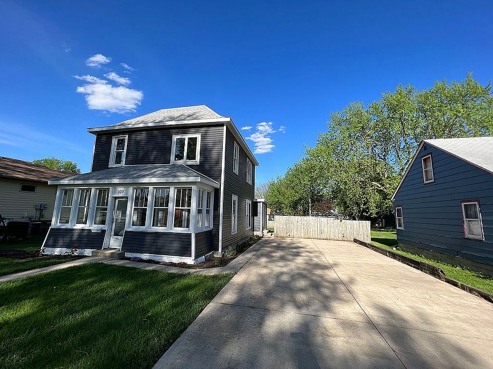 Big beautiful two story home with tall ceilings on main level. Three bedrooms and 1 1/2 bath. Home has new shingles, siding, kitchen, appliances, sewage line under, and floors and carpet only a year old. Very modern, comfy and spacious home. This big home also offers a detached garage and huge front and back yard. Including partial fencing in the backyard and very big driveway.