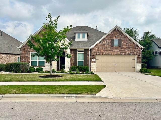 Escape to your very own Texas Hill Country oasis at 309 Buffalo Cave Rd. in the esteemed Wolf Ranch West community. This stunning 1-story, 4-bedroom, 3 bath home sits back on an oversized lot, backing to a greenbelt. With an impressive roofline, charming brick exterior, and mature landscaping, this home is built to impress. The interior is tastefully designed with wood floors throughout, high ceilings, and large windows that bring in light and beautiful views. The open-concept layout features an expansive kitchen, with striking countertops, a large center island, and tons of cabinet space. The kitchen flows into the living room and dining area, creating the perfect setting for hosting family gatherings or dinner parties. You can also bring the party outside on the Texas sized enclosed screened patio and expanded deck. The owner's suite has high ceilings and wood floors that add warmth. The bath has a spa-like feel, with a full-size tub, walk-in shower, and spacious closet. All secondary bedrooms are spacious. An oversized garage provides ample storage for your vehicles and outdoor gear and golfcart. As a resident of Wolf Ranch, you will enjoy access to two community centers with pools, playgrounds, a fitness centers, and hiking trails with impressive views of the San Gabriel River and Georgetown Country Club golf course. Students attend Wolf Ranch Elementary within the neighborhood. This property is located next to everything you need with Wolf Ranch Town Center, Georgetown Square, and major highways just minutes away, offering endless opportunities for shopping, dining, and entertainment.