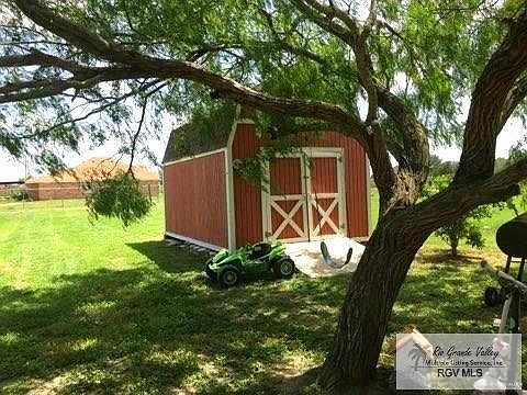 PEACEFUL LIVING, QUIET COUNTRY SETTING! This nicely landscaped 4 bedroom/2 bath home sits on a third of an acre lot with plenty of shade and mature trees as well as young saplings. Home is just a few minutes drive to Harlingen, San Benito and Arroyo City. Good sized open living area with functional kitchen. The 4th bedroom is a converted garage with central AC that could also be used as an office or TV room. Relax outside on your deck under a beautiful large pergola and enjoy the huge, wide -open back yard ! Barn style storage shed located in yard too. Home was recently accented with solar screens, new water heater and AC system. Granite countertops in kitchen. Home is also being sold as OWNER FINANCED