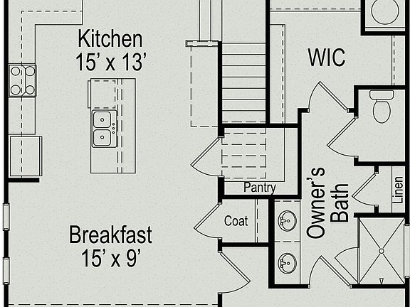 The Callaway II at Stratford Station by Smith Douglas Homes. Featured in the Village Collection. Classic colonial curb appeal is a signature of the Callaway II, one of our popular two-story homes with a first-floor owner’s suite. Guests will arrive at the covered front porch into a spacious and inviting family room, while owners will more often enter from the rear-load garage or patio. There, a bright and generous utility room and walk-in pantry are sure to help keep the main living areas of the home clutter-free. Two extra-large bedrooms upstairs share a hall bath and a loft.