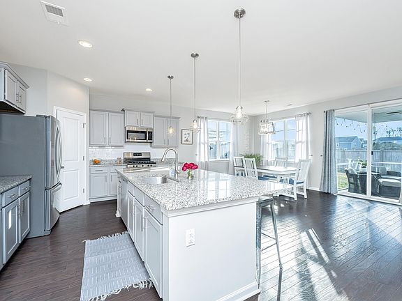 Welcome home! There is no need to build with this move in ready 4 bedroom, 2.5 bath home. This home boasts many upgrades that include wainscotting, backsplash, stair treads, upgraded lighting, gutters, fresh paint throughout,screened in porch, extended patio, extended driveway and fenced yard!Beautiful hardwood floors run throughout the entire main level. Owners will enjoy resort style amenities such as a pool, pickleball court, play park, firepit, and fishing ponds. Enjoy access to a private 300 acre lake.