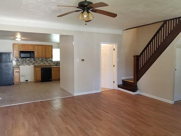 Three bedroom, one bath single family house with bonus room on top half floor. Hardwood floors, ceiling fans, and large backyard with fenced in garden portion. Unfinished basement with lots of room. 2 car off street parking. Tenant responsible for utilities