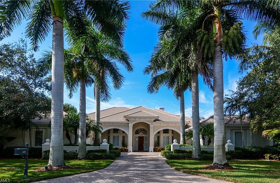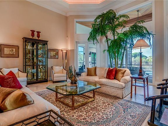 PRICE REDUCTION. MOTIVATED SELLER. NEW ROOF TO BE INSTALLED. IT'S A TRIFECTA. Don't let this opportunity pass to live in a beautiful home and a great community. Listen to the quiet sounds of nature in this stunning estate home with sweeping sunset views over a protected preserve. The quality and details of this home begin at the pillared entrance. The classic design lives large and open, with French doors leading from the living room to the lanai offering spacious seating and a fully equipped outdoor kitchen. This four bedroom home with six bathrooms has upgrades and custom finishes throughout. Travertine floors, volume and cathedral ceilings with crown moldings. The open kitchen flows to the large family room with wet bar, wine cooler and custom cabinetry. * THREE EN SUITE GUEST BEDROOMS WITH WOOD FLOORS * MASTER BEDROOM HAS CHERRY WOOD FLOORS IN HERRINGBONE PATTERN * MASTER BATH HAS ISLAND WITH BUILT IN DRAWERS, TWO BATHROOMS AND TWO SPACIOUS CLOSETS * SMALL CABINET WITH REFRIGERATOR AND SINK IN MASTER * LARGE STUDY WITH CUSTOM SHELVING AND HALF BATH ACCESS * FORMAL DINING ROOM * LIVING ROOM WITH FIREPLACE * THREE CAR GARAGE * BUILT IN 2001