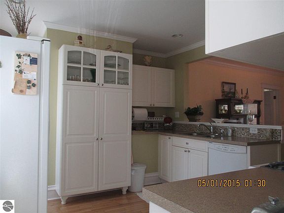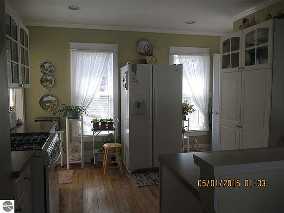 A must see craftsman style home remnant of the past embraced by its wrap-around covered porch. You'll fall in love with the polished maple floors, high ceilings, and leaded glass windows. The exterior has a detached 2 car garage, covered back porch entrance, large patio area, and a garden shed. This is a quiet community of nice homes, towering trees, and great neighbors. You are only a couple blocks from the East Tawas Park, and downtown shopping.