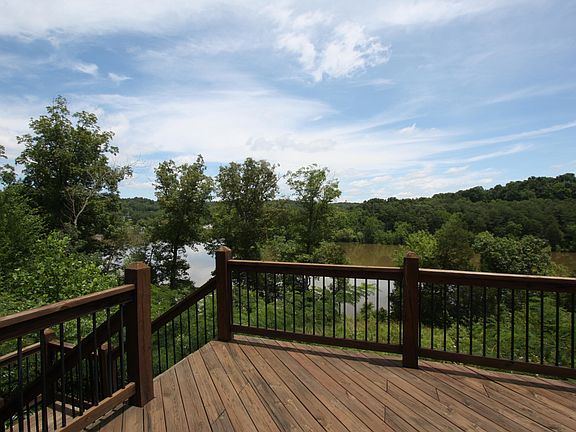 Great value on this Nolin Lake front home on 2.1 private acres. Panoramic views can be enjoyed on the expansive rear deck. The spacious family room has a gorgeous stone faced fireplace with built in book shelves and hardwood flooring. The kitchen has plenty of cabinetry, including a pantry styled cabinet. The first floor master has a walk in closet. The full bath has shower and double bowl sink. There's also an additional room that would make an ideal office or catch all and a half bath. Upstairs is the loft that overlooks the great room, plus two bedrooms and a full bath. The lower level walk out has a family room with built ins, a great area for a pool table, the 4th bedroom, a full bath/laundry, plus an additional finished room. You'll have plenty of room for the toys-there's a (More) one car attached garage, plus a detached 30x36 three car garage with loft storage. The dock is transferable with the Corp of Engineers approval. Who needs a vacation? You can enjoy stargazing, smore making, boating, skiing, fishing, walking, nature watching and family memories in this expansive home.