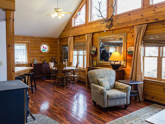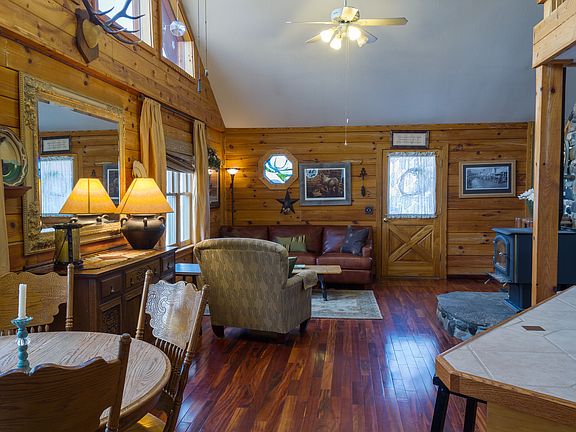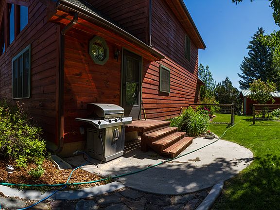 Jessie Creek runs through the property of this open concept two story log home with family room loft. This home is located at the end of a quiet lane with mature trees and a great view of the Beaverhead Mountain Range. This house features 3 large bedrooms: 1 master upstairs (measures 12 x 17 feet) with attached bathroom (tub w/jets and shower with two heads) and 2 downstairs (1 with walk-in closet and the other with a french door opening onto the back deck). The bedrooms downstairs measure: 15.6 x 13 feet and 13.6 x 13.6 feet. The upstairs loft features a family room with French doors leading out to a deck facing the Beaverhead Mountain range. The house has multiple heat sources: wood stove with beautiful rock work behind, propane heater and electric heat (wall) in all rooms. The house is surrounded by a beautifully landscaped yard, the backyard is fenced and includes a 12x16 shed. During the summer of 2014, a new shingle roof was put on the home and a large concrete driveway was installed that leads into the two car garage. New Hickory flooring upstairs and new windows throughout this home. This home is turn key ready. Garage insulated and newly painted. Recently appraised at $315,000.