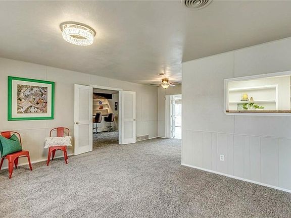 Want to take a walk down a GROOVY lane? Step inside of this 60's ranch and be greeted by modern amenities with retained mid-modern charm. From the mirror tiles in the foyer to the HIPPEST bar with matching barstools this home is perfect for those Mad Men loving folks who would like to enjoy a Manhattan in their den after a long day at the office. At over 2200 sq. ft. and with 2 massive storage buildings in the backyard this home has room for any size family or hobby. Located in a sought-after area of a fabulous and established Midwest City neighborhood, this home truly has it all.