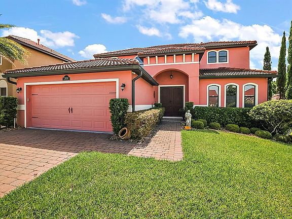 Don't miss the opportunity to see this custom-built Mediterranean style home. This home has over 3200 square feet under air and features 4 Bedrooms and 2 and a half baths, a large bonus room upstairs, formal dining room and a gourmet kitchen with center island, built in oven and gas cooktop with granite countertops with stainless steel appliances included. There is also a separate breakfast nook area next to the kitchen overlooking the back yard. The master bedroom and bath are downstairs and feature a large walk in closet and double vanities, shower, and separate tub. There is also a half bath downstairs for guests. All the bedrooms are oversized and there is plenty of room to spread out. There is a screened lanai and patio out back to relax and enjoy your morning coffee. The home has a tile roof for lower maintenance and longevity. Located in the popular Sunnyside area of Leesburg, between Lake Harris and Lake Griffin, close to UF Health Hospital, city recreation facility, shopping, the 441 corridor and within an hour to the theme parks!