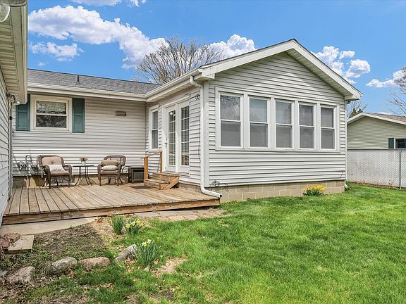 This charming 3-bedroom, 1-bath home is full of warmth and character. From the moment you step inside, you'll feel right at home. The cozy living room greets you with hardwood floors and plenty of natural sunlight. The kitchen flows nicely into the dining area and into a bright, spacious sunroom-complete with several windows, and a door that leads out to the deck and large fenced-in backyard. It's the perfect spot for relaxing, plants, or weekend hangouts. The bathroom has new flooring and all three bedrooms offer comfortable living space. Downstairs, the basement has finished rooms that are great for a home office, game room, or hobby space-plus an unfinished area ready for storage or your next project. There's a one-car garage and a cute front porch that's perfect for morning coffee or unwinding in the evening. Water heater was new in 2022, fresh paint has been applied, and little touches have been upgraded throughout! With move-in ready appeal and endless potential, this home is a true gem for anyone looking to enjoy the serenity of small-town living without sacrificing space or style.
