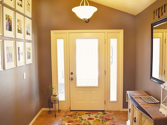 This well-appointed Deeter home has three bedrooms, two bathrooms, a living room, dining room, kitchen, and family room. The home is situated in a quiet culdesac on the Northwest side of Ridgecrest, and within walking distance to Las Flores Elementary School. Approach the landscaped front yard and wide driveway, which offers ample parking for guests or toys. Continue towards the covered porch and cross the threshold into the inviting entryway. Be greeted by a large living room and spacious dining room. Around the corner, you will see the kitchen neatly finished with ebony granite countertops, a mosaic backsplash, white cabinets and tile flooring. The family room holds a cozy fireplace to enjoy on a cold winter night. There is tile flooring throughout with carpeting in the bedrooms. Additionally, an added room offers additional space for a playroom or office. The backyard offers a patio and enough room for family fun without the added hassle of the upkeep of a larger area. It's a perfect home for a young family.