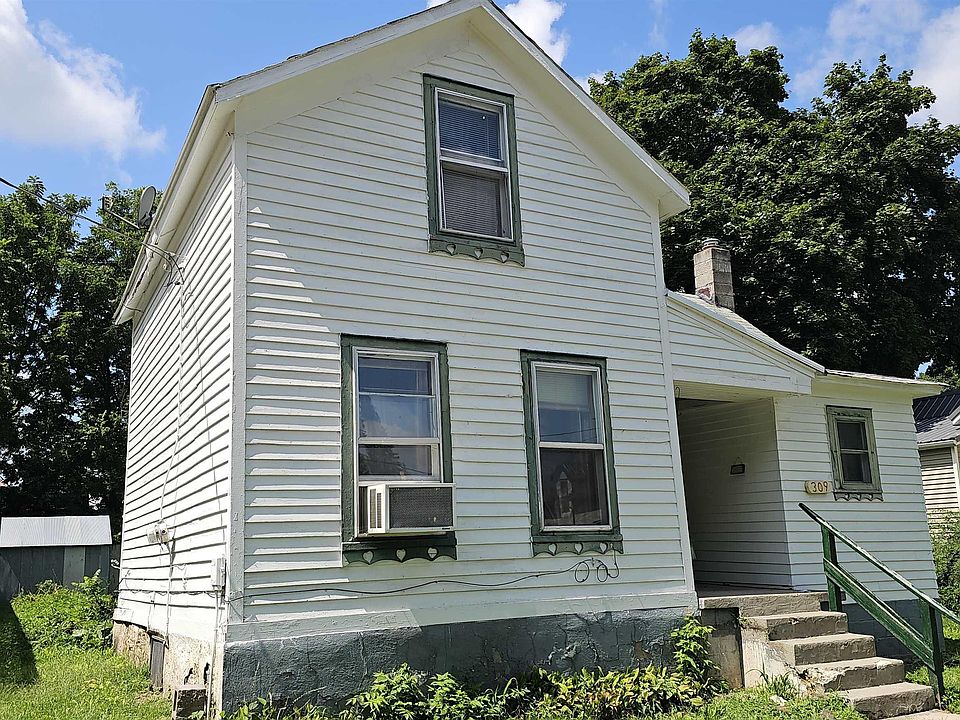 PENDING SALE on this Small bungalow on Day St. with 50 X 132 ft. lot size. Off-Street parking option in rear yard. Located just a few blocks from the Downtown business district. Basement was seen on 8/19 2025 after near record level rainfalls as functional- no standing water around furnace or water heater location. Being Sold in AS IS, AS SEEN condition. CASH offers needed, minimum earnest money value in any offer to be $5,000 or higher. Interior photos provided upon request. All utilities are currently on for tours. 2 Window AC units and appliances currently seen within the property are included without any warranty of function. All personal property and furnishings within the property to remain and be included with the real estate at closing. Small metal storage shed in rear yard is included.