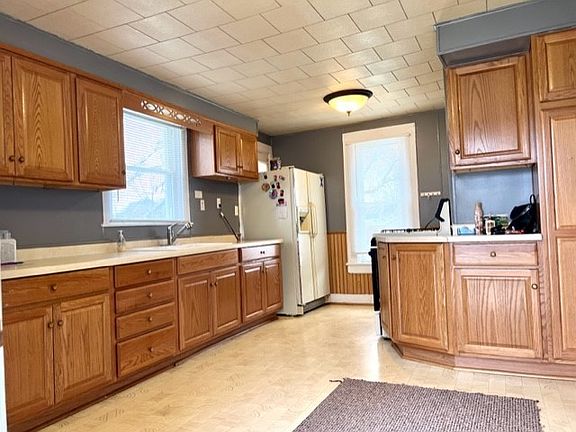 3 Bedroom, 1 1/2 bath home with two car garage on two lots! Wood laminate flooring throughout living room and dining room. Oak cabinetry in spacious kitchen. Tilt out windows through out home. Updated bathroom in 2022. Concrete patio perfect for summer time with fenced in yard! Sellers are providing a home warranty.