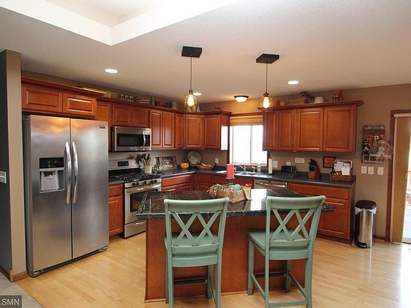 Custom built with all the amenities, cherry finishes, open floor plan tray vault lighted LR ceiling. Kitchen with stainless appliances, gas range, tile island, custom fireplace, 3 BR's main level, must see master suite with privacy, walk in closet, full bath. Full finished lower level, large open family room with wet bar, slate flooring and walk out, 1 BR down with office/exercise room/non-conforming BR and laundry. Over-sized landscaped/fenced yard backs up to walking paths. A must see!