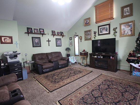 This is a 2 bedroom home with more room than you would think. A newer large 17 x 20 living room with vaulted ceilings adds to the size, eat-in kitchen with extra room off to be a formal dining space or office space. Two main floor bedrooms with a bathroom in between. The basement has a nice family room to add more overflow space. New windows installed in 2012 and a new metal roof in 2013 to help in upkeep. There is a good sized deck out front and two storage units with wooden floors, while one has electric to it. Also, there is additional space if you want to add a carport. Reserve refrigerator, washer, dryer, some rocks and a rose bush to be removed in the spring. Be sure to put this on your list to see!