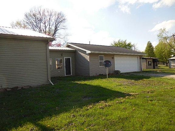 Three bedroom home with vinyl siding and steel roof. Corner lot, over sized garage.