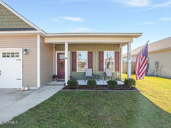 Welcome to 309 E Hargett St, Richlands, NC! This charming 3-bedroom, 2-bathroom home offers a perfect blend of modern comfort and convenient location. Step inside to find LVP flooring throughout, recessed lighting, and a spacious open-concept floorplan with vaulted ceilings. The kitchen is a chef's delight, featuring granite countertops, sleek white shaker cabinets, and stainless steel appliances. The master suite boasts a tray ceiling, a walk-in closet, and a private bath with dual vanities and a shower/tub combo. Enjoy the outdoors on the covered front and back porches, surrounded by well-maintained landscaping and a sizable backyard. Located within walking distance of Trexler Middle School and just a short commute to shopping, parks, beaches, and military bases, this home offers the best of both convenience and style! Don't miss out on this great opportunity!