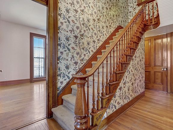 This stunning 4-bedroom, 2-bathroom Victorian gem is an absolute must-see! Nestled in the heart of downtown, it seamlessly blends original charm with contemporary features. Prepare to be enchanted by the abundant Natural Light. The floor-to-ceiling windows flood rooms with sunlight, creating a warm and inviting atmosphere. Step through the front door and be greeted by a gracefully curved stairway adorned with a beautiful coffin rail-a true architectural delight. The eat-in kitchen, complete with an attached dining room, is perfect for hosting gatherings. Imagine sharing meals with loved ones in this charming space. The front room can serve as a den or easily be converted into a fifth bedroom, offering versatility to suit your needs. While the fireplaces are not currently functional, their vintage charm adds character to the home. The upper level boasts three bedrooms. Two share a convenient jack-and-jill bathroom, while the third features large arched Anderson windows-a serene haven for relaxation. The basement, original built-in cabinets, shed, and 2-car detached garage provide plenty of storage options. The fully fenced backyard beckons as an entertainer's dream. Picture hosting barbecues, garden parties, or simply enjoying the fresh air. A wrought iron fence, covered porch, and commercial flagpole adorn the front, adding to the home's curb appeal. The upstairs central A/C unit was replaced in 2022, and the downstairs furnace within the past 5 years. Plus, the downstairs bathroom received a stylish remodel in the summer of 2023. Don't miss out on this unique blend of history and modern comfort. Schedule your viewing today!