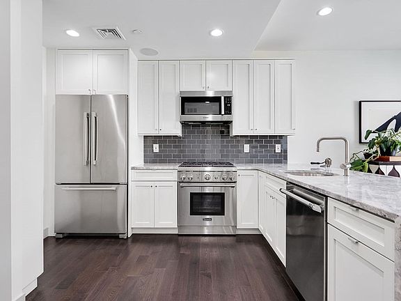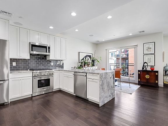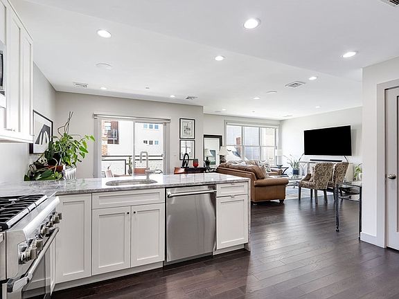 Sleek 2bd/2ba corner unit at coveted Dahlgren Hall. 1237 sqft highly efficient layout in this upper-level condo. Modern kitchen has Thermador appliances, waterfall granite, gas cooking, ample custom cabinets + countertop space, and a breakfast bar for seating. The kitchen overlooks the generous open dining and living spaces. Sliders off the dining room lead to a private deck. Primary suite w/ gas fireplace, customized walk-in closet, and ensuite tiled bath w/ glass shower and rain showerhead. The oversized second bedroom has another custom walk-in closet nearby the second full bath. In-unit laundry, Nest thermostat, Sonos wired sound, hardwoods, two exposures of windows, garage parking, and ample private storage room (currently used as a home gym). Located in a boutique, professionally managed, elevator building with common penthouse roof deck, clubroom, and kitchenette. On a quiet street just a stone’s throw from the heart of Broadway St restaurants, shops, public trans.