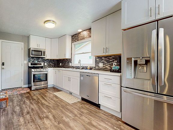 This charming ranch is located in a family-friendly neighborhood, just a short walk to Tomar park with new tennis courts, playground, basketball courts, and access to the Sioux Falls bike trail! The main level has luxury vinyl plank floors, vaulted ceiling, and features a fireplace. Also on the main level are 3 bedrooms. The kitchen features luxury vinyl plank floors, granite counters, tiled backsplash and stainless steel appliances. The primary bedroom is located on the main level and features carpet floors, conventional ceiling and walk-in closet. The primary bedroom's attached bath includes laminate floors, solid surface counters and one piece shower. The finished walkout lower level features a fireplace, bedroom, storage area and laundry room. Outside you'll find a yard with mature trees. Exterior features include a kids playset.