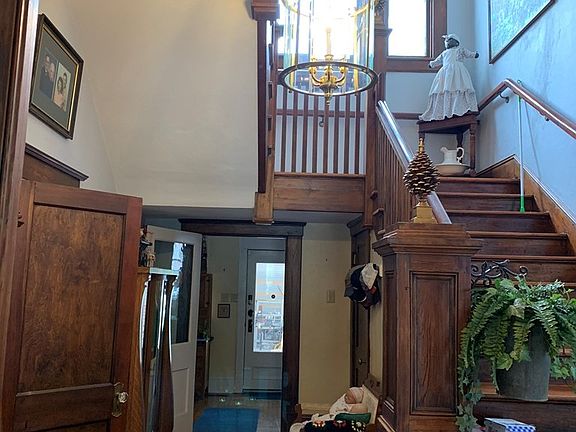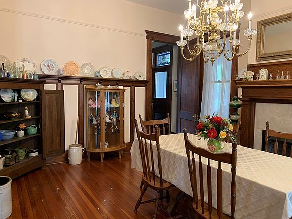 BEAUTIFUL HISTORIC HOME is on the National Register of Historic Places! 3 bed/3 1/2 bath. Red brick with white columns and a wrap around porch! House has Slate roof and flat porch roof is rolled & just had new latex sealer applied. Koi fish pond and fountain; generator box located outside for power outages; privacy fence and dog kennel. The inside is just as beautiful with original hardwood floors and original pocket doors; Sunroom/porch; 5 fireplaces; kitchen island; Master has sitting room and large walk-in closet with built-ins; Master bath has double vanity, separate tub, & shower with sitting bench; sink in laundry room; baths are handicap accessible. 3 car garage (detached) with 3 storage rooms. Carriage house has new metal roof, 1 full bath, & kitchen, and could be income producing! Motivated Seller! Call today to view this beautiful home! Motivated Seller!!