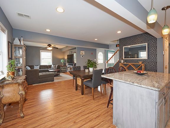 This fantastic mint condition home boasts a lovely open floor plan. The updated kitchen has stainless steel appliances, gas stove, granite countertops and tile floor. Enjoy entertaining any time of year. The bonus room on the first level could be a bedroom, office or playroom. The laundry is located on the second floor between the two bedrooms. The spacious fenced private yard has two storage sheds and paver patio for spring, summer and fall cookouts. Large concrete driveway can easily accommodate several vehicles. Close to all transportation routes, beach and downtown Belford for shopping. All room sizes are approximate. Square footage is taken from tax records.